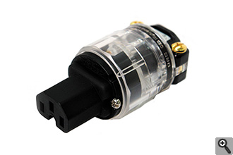 通電部に高純度金メッキ処理を施したオーディオ用インレットプラグ