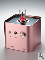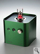 | プリアンプ部の1段目には低雑音真空管6DJ8の通信用や軍用等に用いられる上位バージョンの真空管6922(E88CC)を採用しています。又、真空管というと100Vかそれ以上の高い電源電圧で動作させ、直線性のある領域で動作させるものですが、音質とコンパクトを両立するために低電圧動作でも直線性の良い真空管6922(E88CC)を採用しました。 |