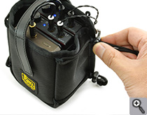 | 入力ケーブルの干渉を防ぐベルト構造 | 厚みを調整できるストッパー付き紐 | 内部を保護するWポリメッシュ素材 |