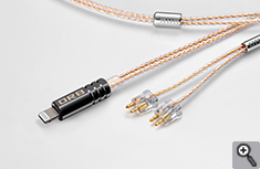 Apple純正品「Lightning-3.5mmヘッドフォンジャックアダプタ」のLightning端子を使用し、ボディシェルには専用設計をした真鍮製のオリジナルシェルを採用しました。