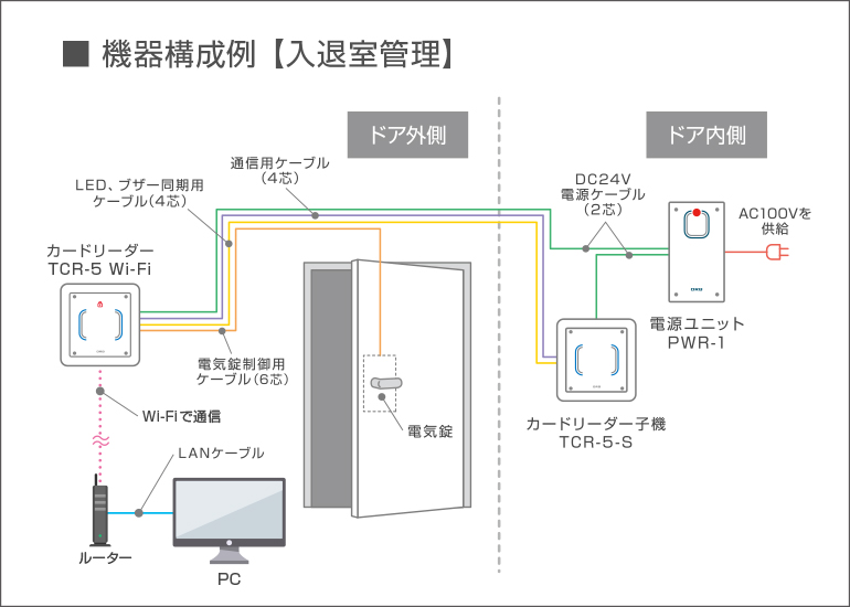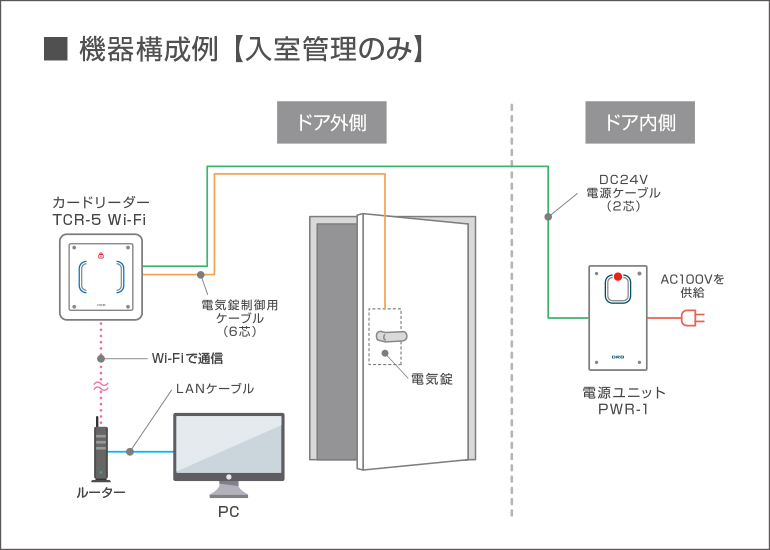 ORBのドアコントローラーTCR-5 Wi-Fiシリーズは、カードをタッチするだけでドアの電気錠を解錠し、ログ(解錠履歴)を記録する入退室管理システムです。