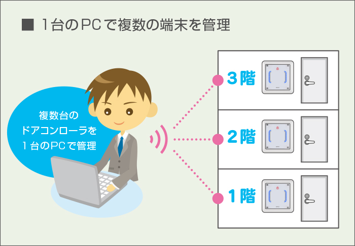 PCにインストールした管理ソフトでカードの登録・削除、ログの確認・出力ができます。